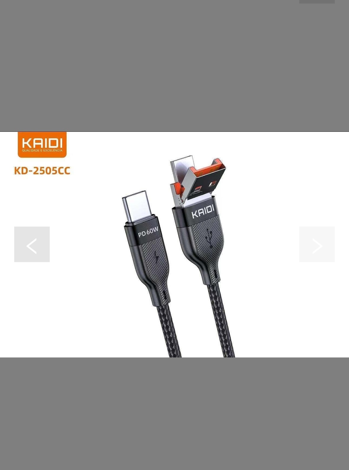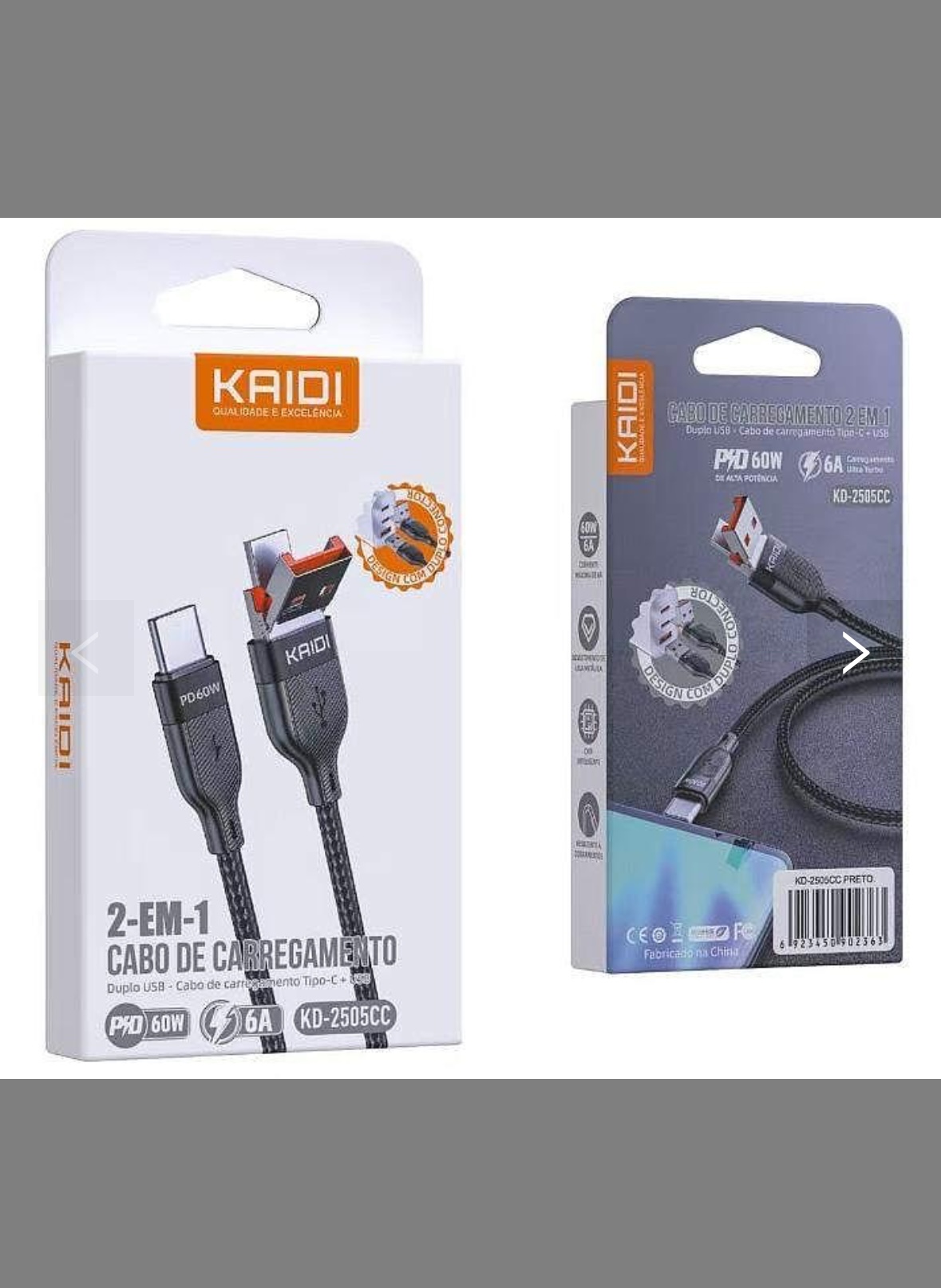 Cabo de celularCabo de Carregador Turbo 60W Duplo USB-c / USB 2 Em 1 Tipo C Para Tipo C / USB Original KAIDI kD2505